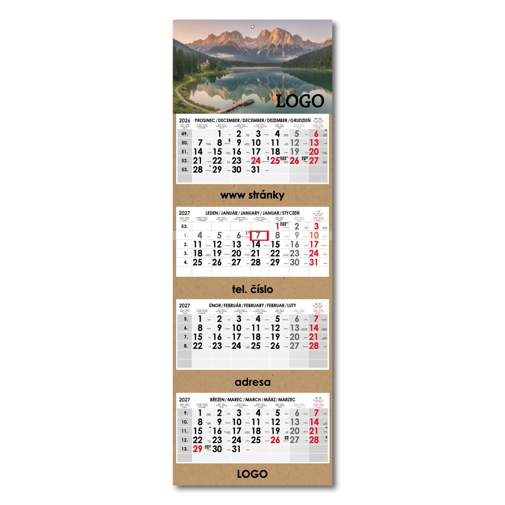 Formát kalendária: 295 x 135 mm