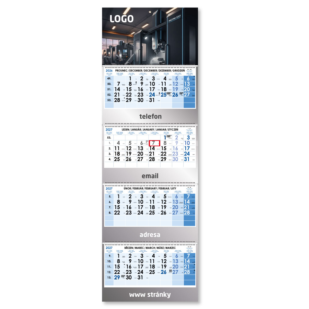 Formát kalendária: 295 x 135 mm