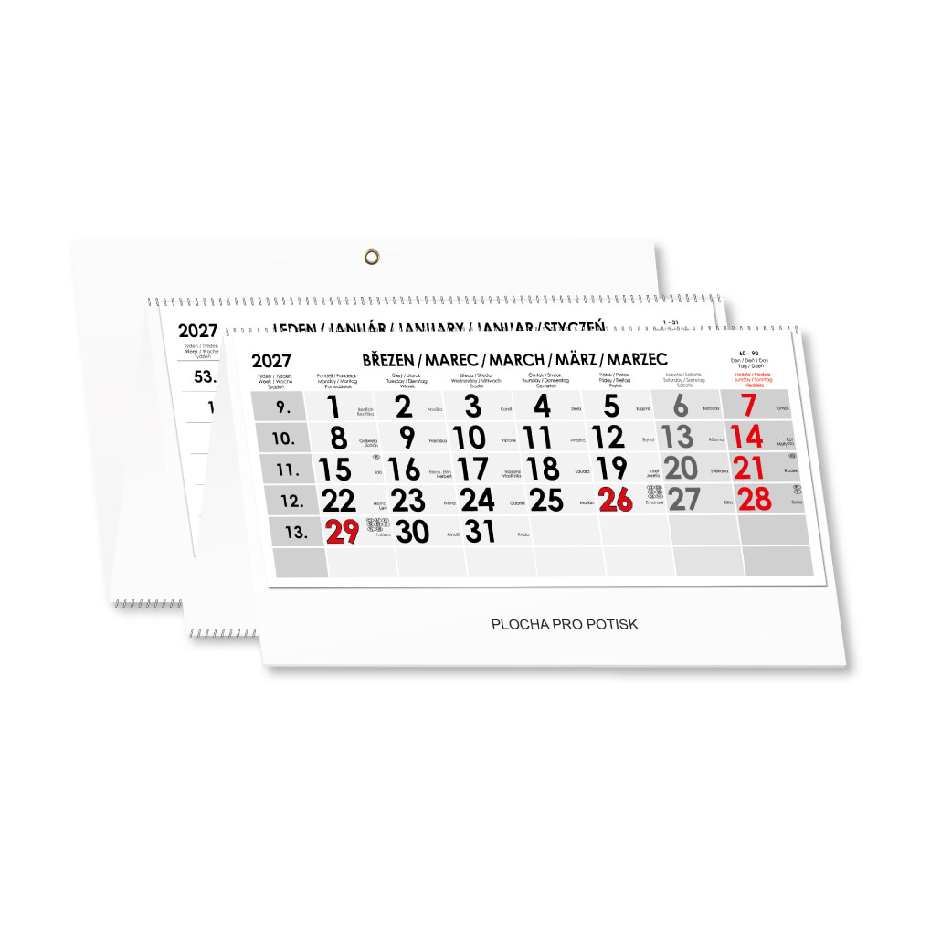 Čtyřměsíční kalendář Kvatro skládaný český se spirálou 2027 - šedý