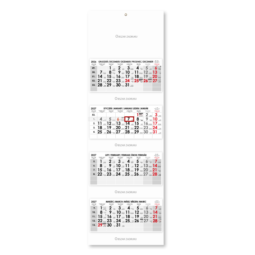 Čtyřměsíční kalendář Kvatro skládaný polský 2027 - šedý