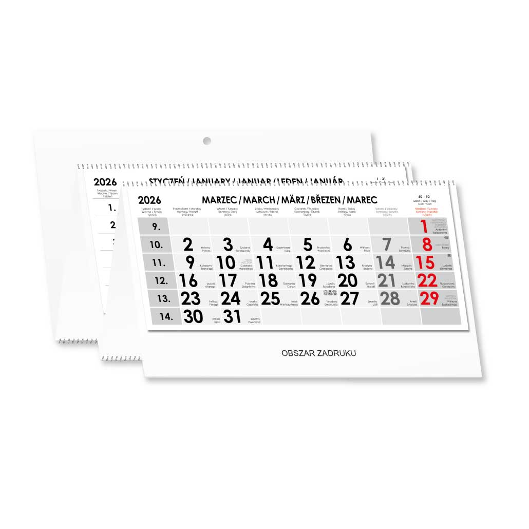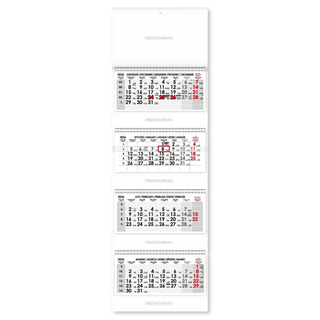 Čtyřměsíční kalendář Kvatro skládaný polský se spirálou 2026 - šedý