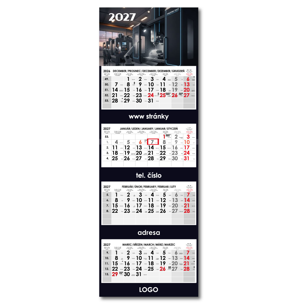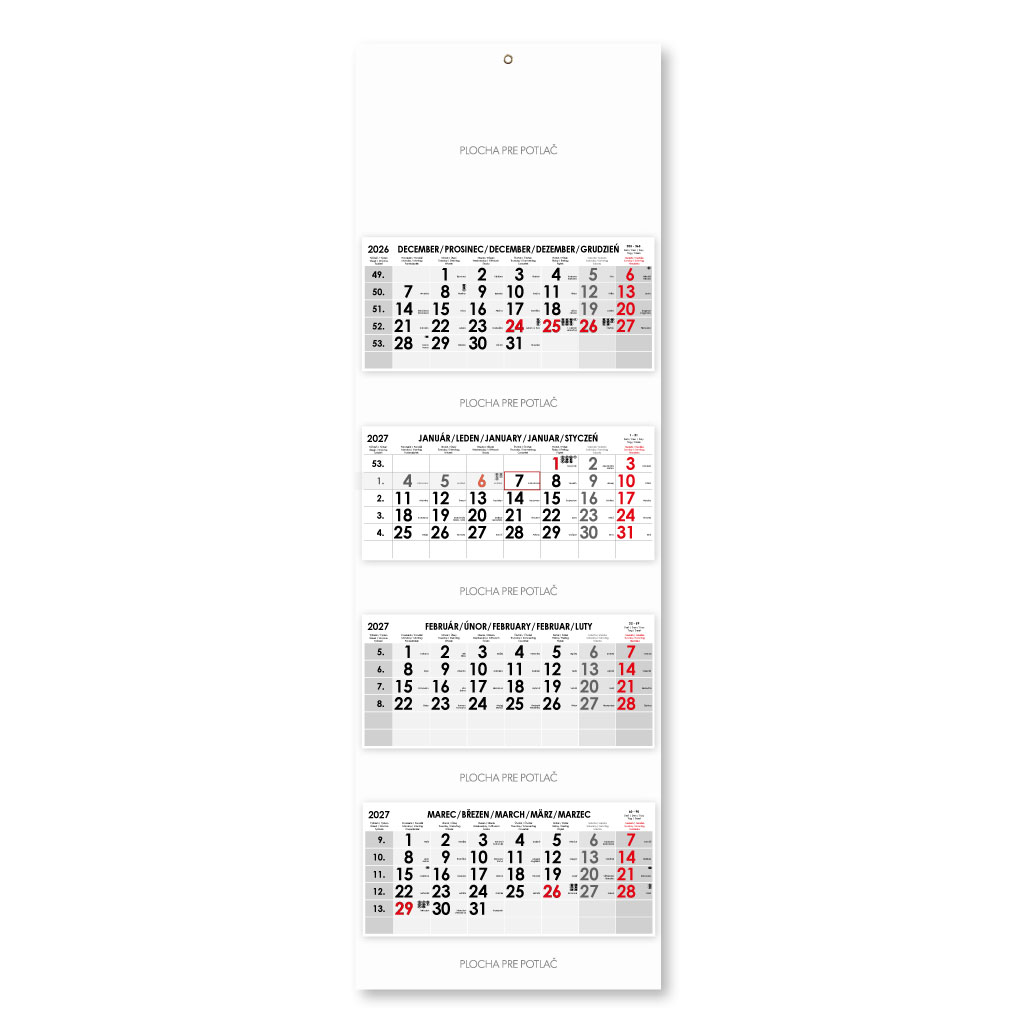 Čtyřměsíční kalendář Kvatro skládaný Slovenský 2027 - šedý