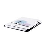 Součástí notesu je poutko na propisku a kovová propiska.