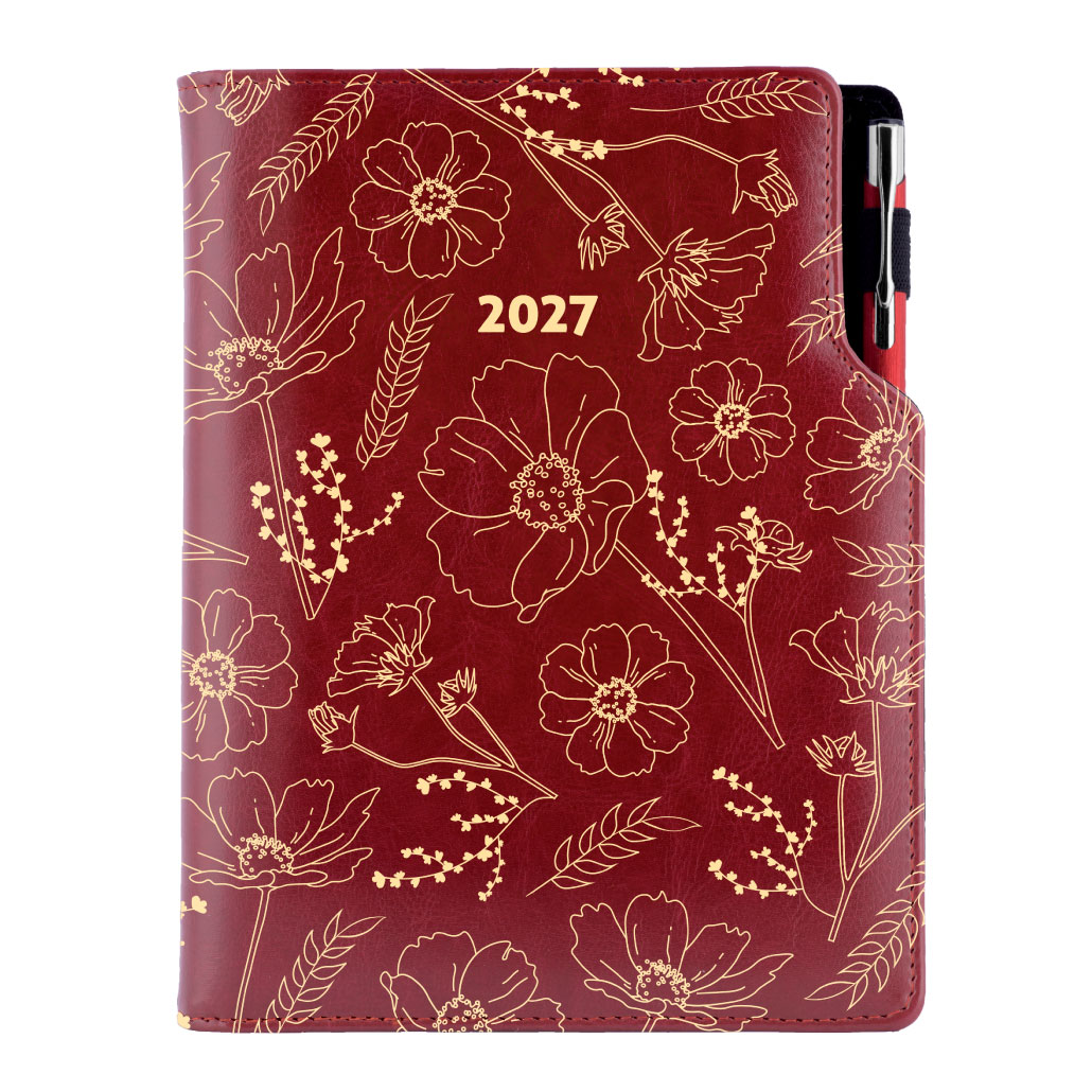 Diář DESIGN týdenní A5 2027 český - bordó - Květiny