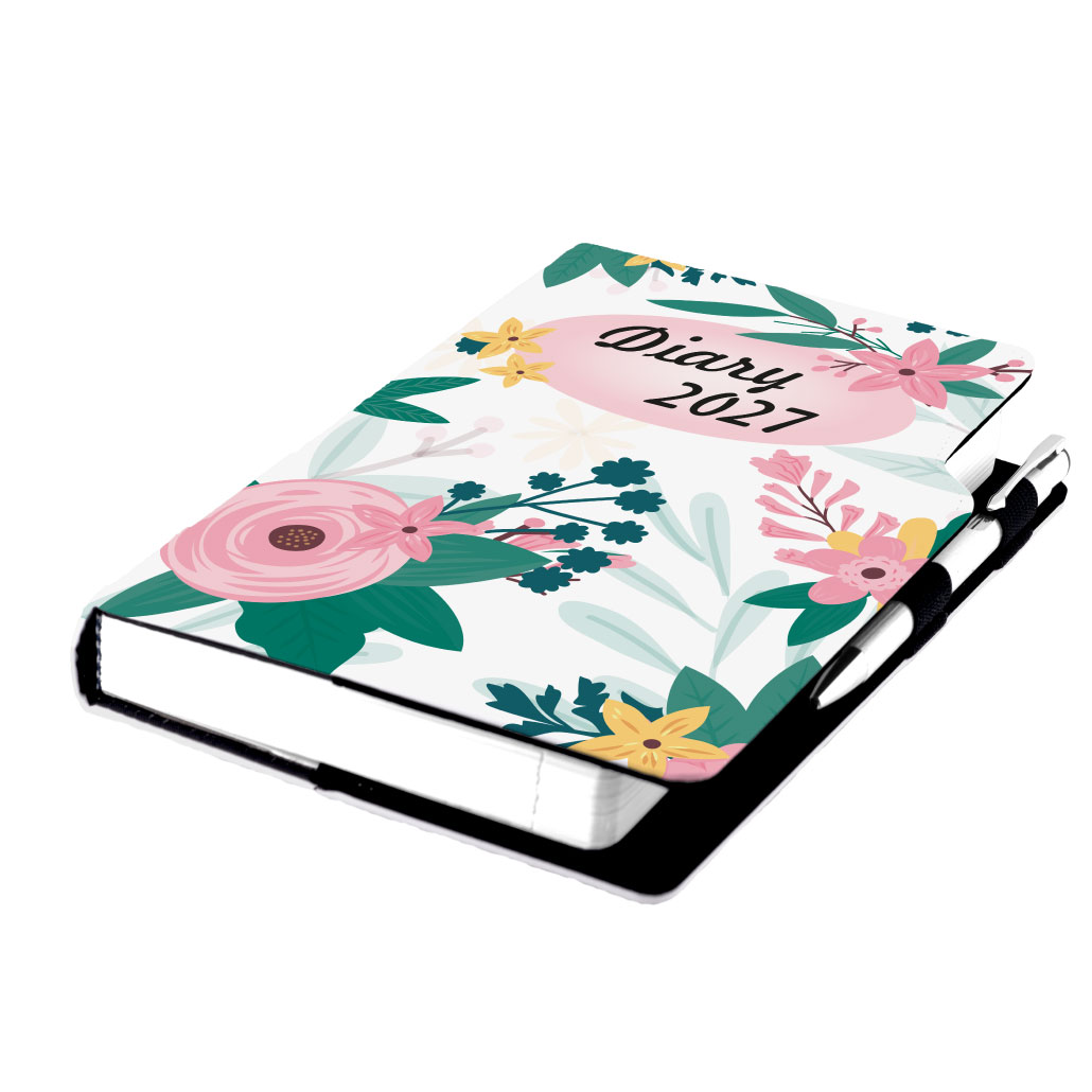 Diář obsahuje: kulaté odtrhávací rožky, bílou záložku a propisku