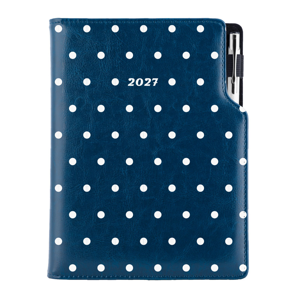 Diář DESIGN týdenní speciál A5 2027 - modrá - Puntíky