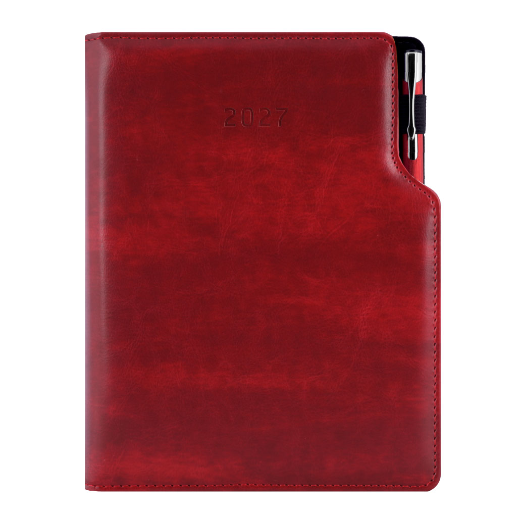 Diář GEP s propiskou týdenní speciál A5 2027 - bordó žíhaná