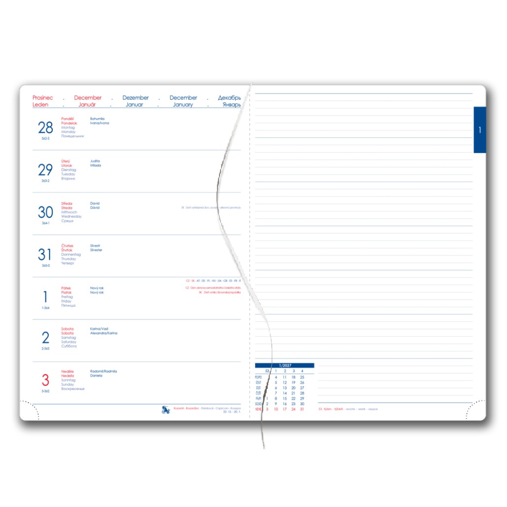 Kalendárium: týdenní jmenné CZ/SK na jedné straně + strana na poznámky