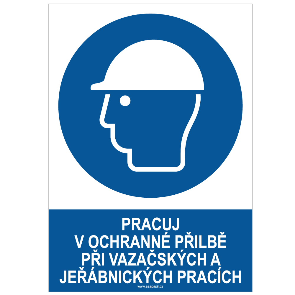 RBT-SA4-227 | PRACUJ V OCHRANNÉ PŘILBĚ PŘI VAZAČSKÝCH A JEŘABNICKÝCH PRACÍCH - bezpečnostní tabulka, samolepka A4 | Samolepka | A4 (210x297 mm) | AAApapir |