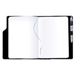 Součástí notesu je poutko na propisku a kovová propiska.