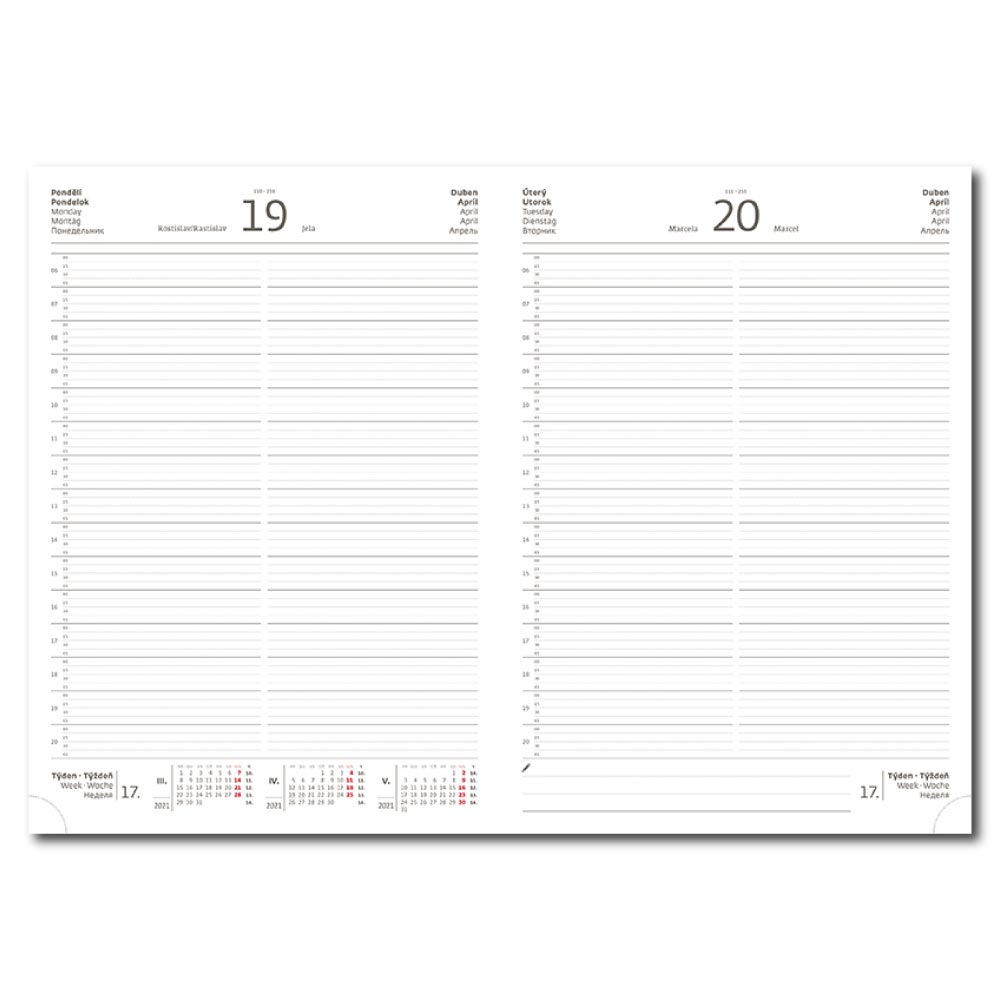 mezinárodní svátky, roční výhled, denní layout, adresář.