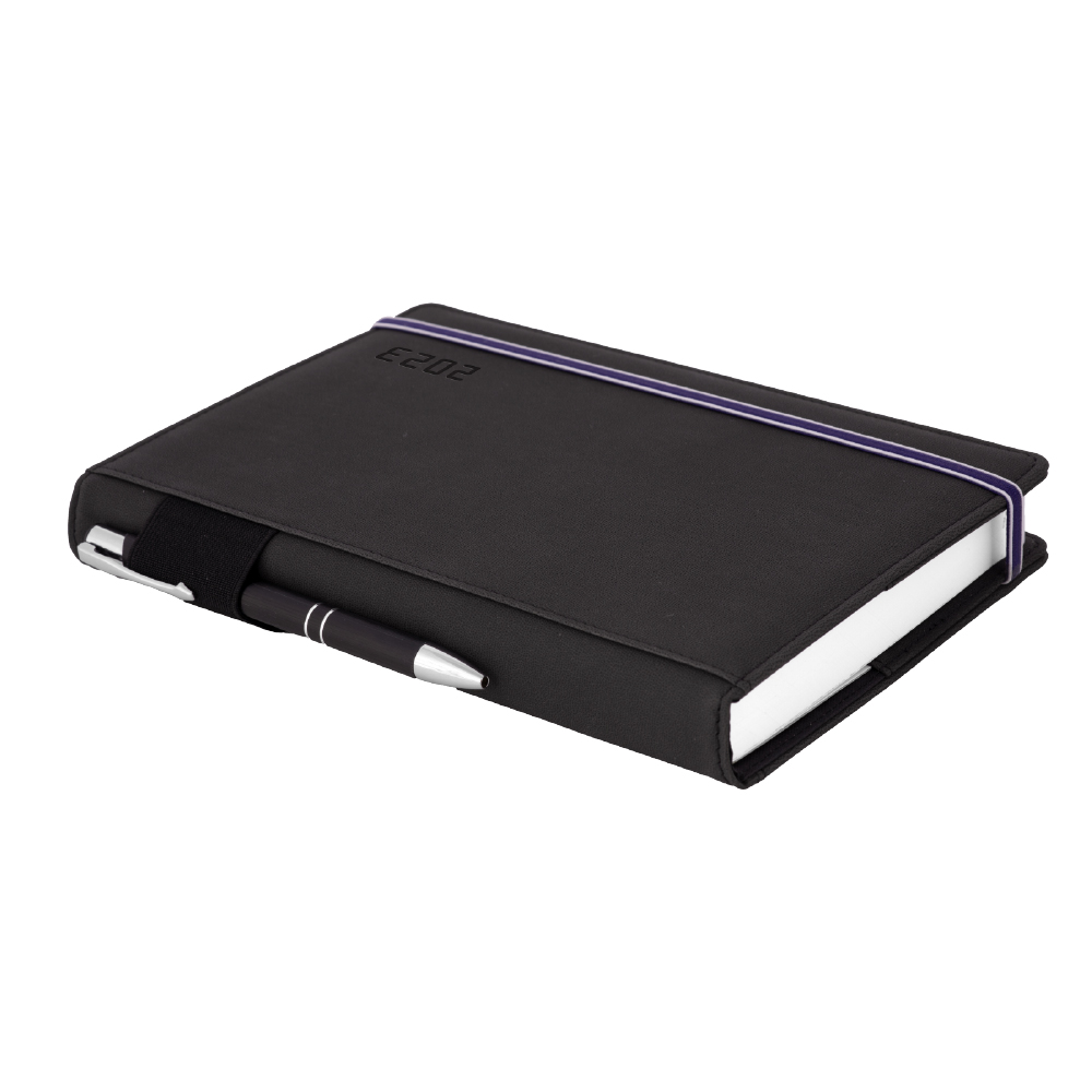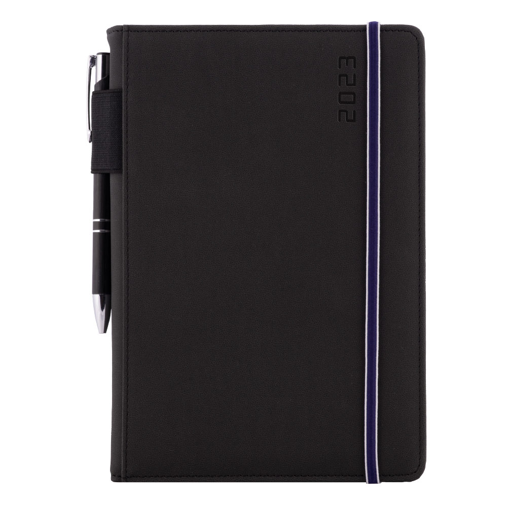Diář AMOS denní A5 2023 polský - černá/modrá gumička