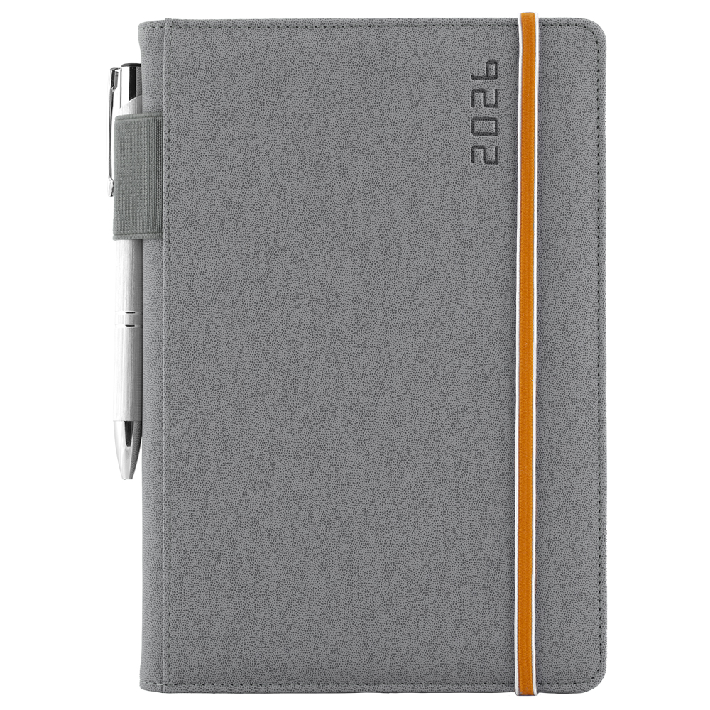 Diář AMOS denní A5 2026 slovenský - šedá/oranžová gumička