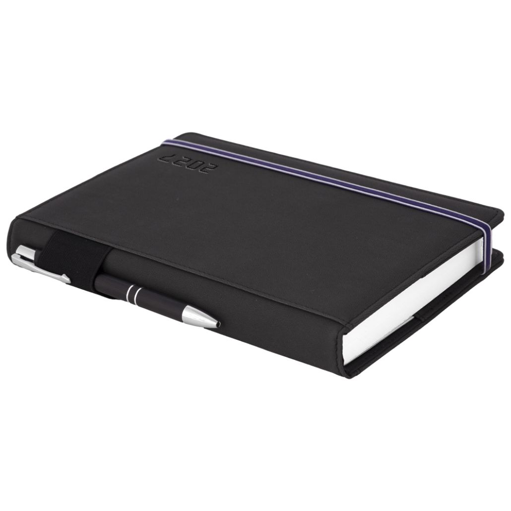 Diář AMOS denní A5 2027 český - černá/modrá gumička