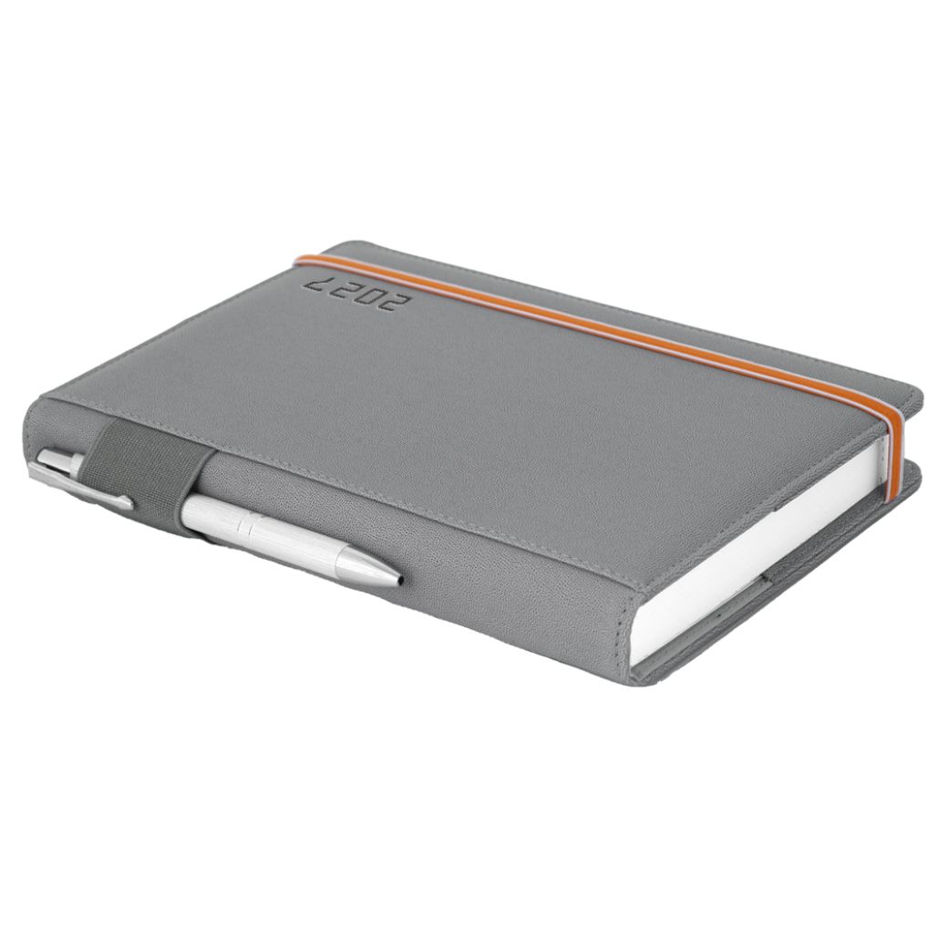 Diář AMOS denní A5 2027 český - šedá/oranžová gumička