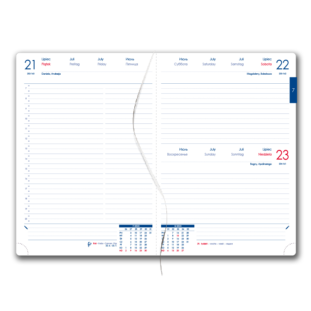 Diář obsahuje: kulaté odtrhávací rožky, bílou záložku,