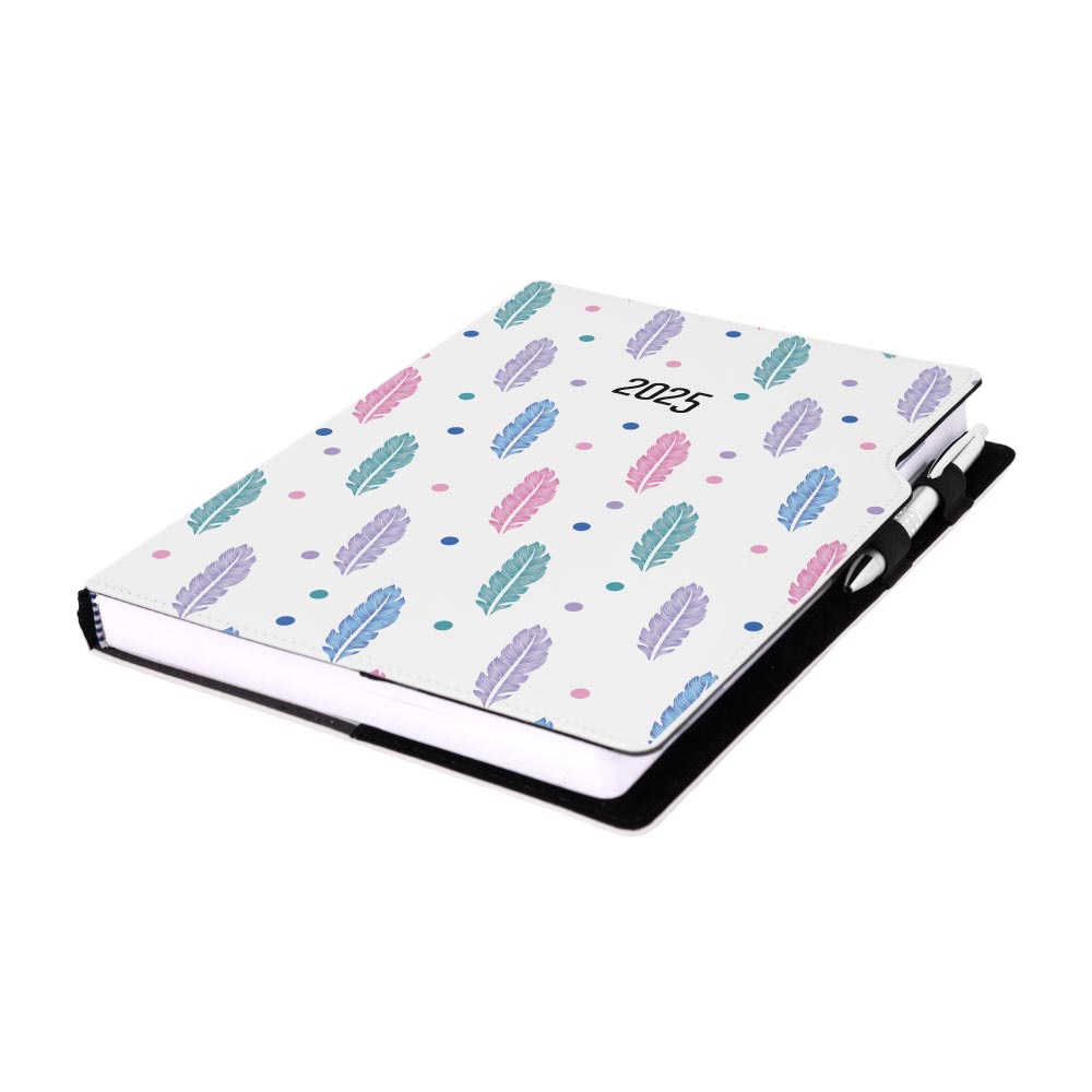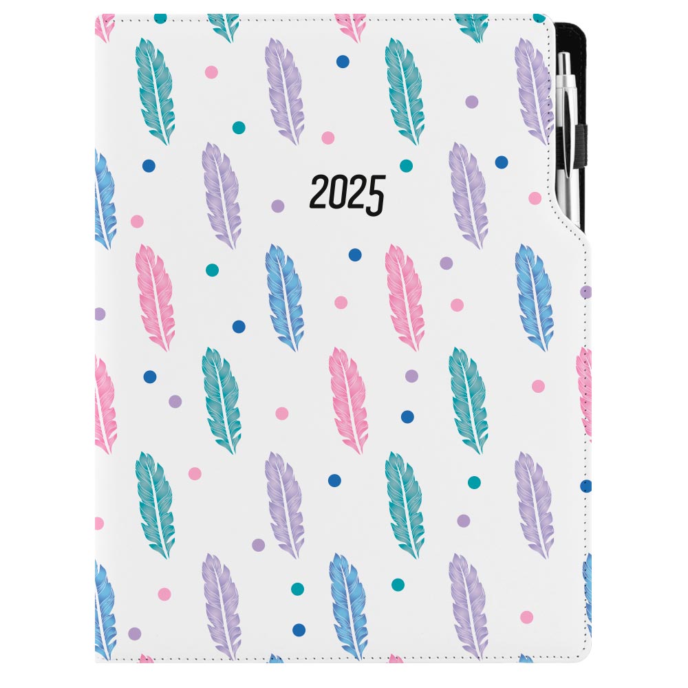 Diář obsahuje: kulaté odtrhávací rožky, bílou záložku a propisku