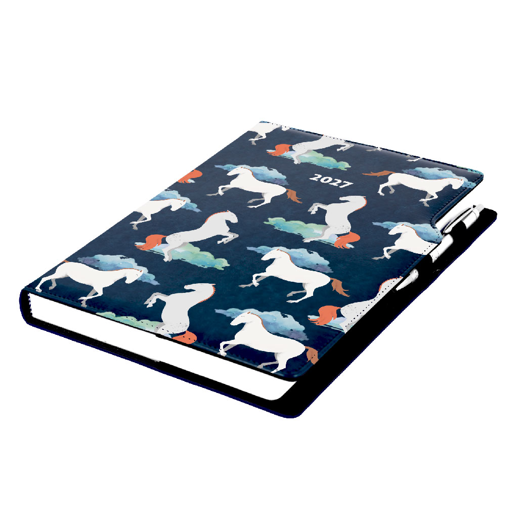 Diář DESIGN denní A4 2027 - modrá - Koně