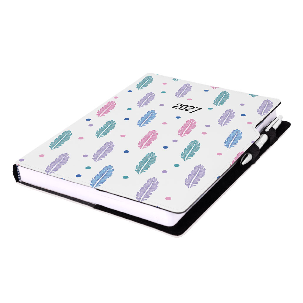 Diář obsahuje: kulaté odtrhávací rožky, bílou záložku a propisku