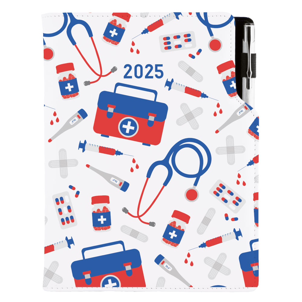 Diář obsahuje: kulaté odtrhávací rožky, bílou záložku a propisku