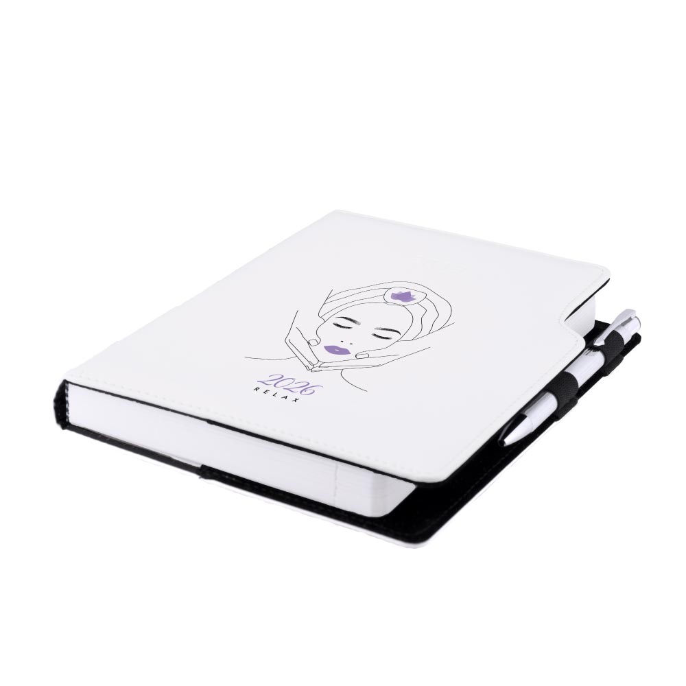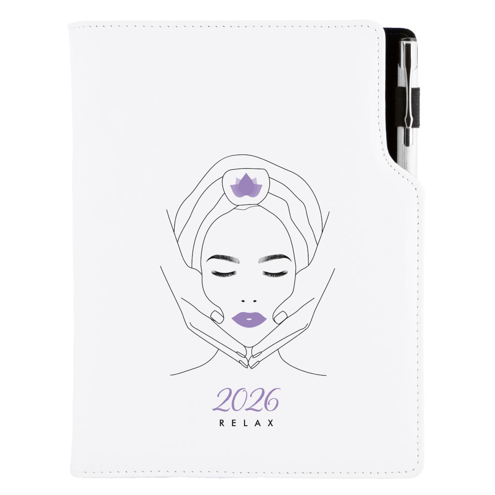 Diář obsahuje: kulaté odtrhávací rožky, bílou záložku a propisku