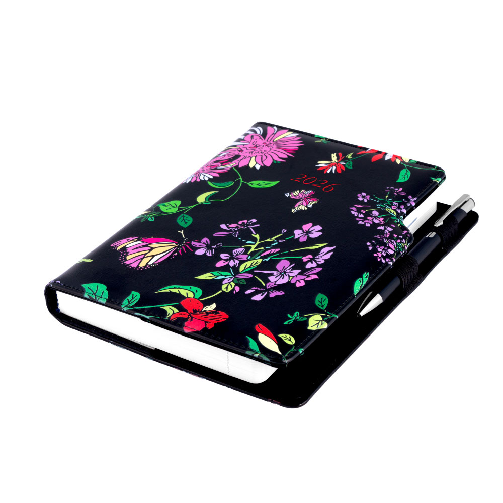 Diář DESIGN denní A5 2026 slovenský - černá - Květy