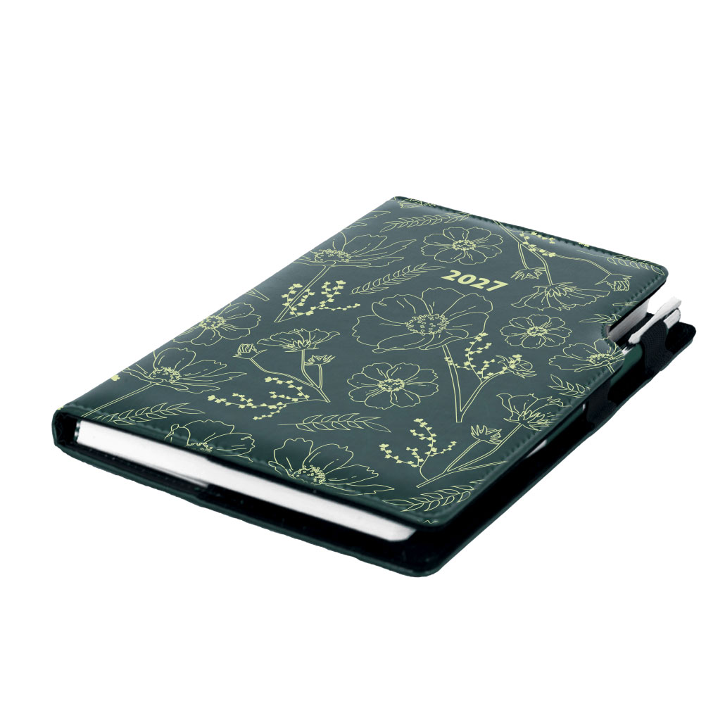 Diář DESIGN denní A5 2027 slovenský - zelená - Květiny