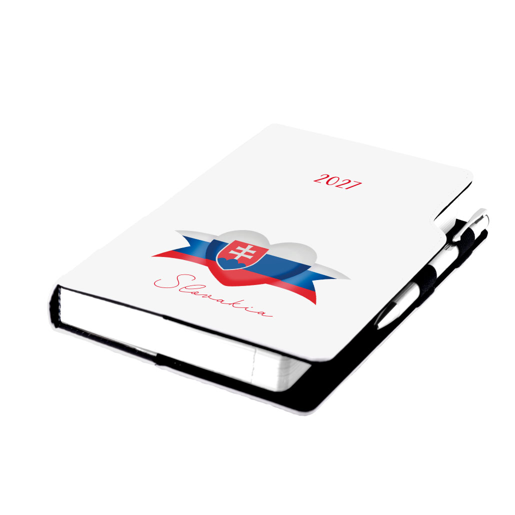 Diář DESIGN denní B6 2027 - bílá - Slovensko - vlajka