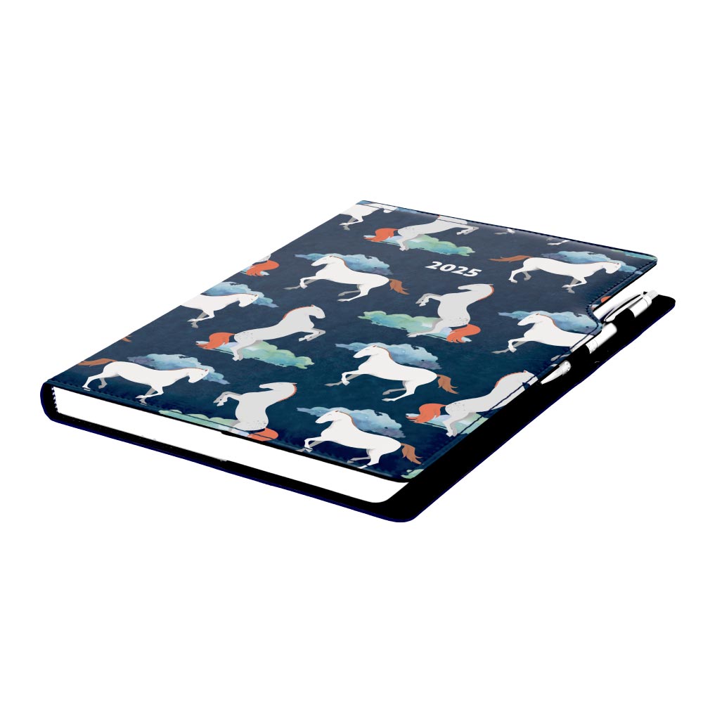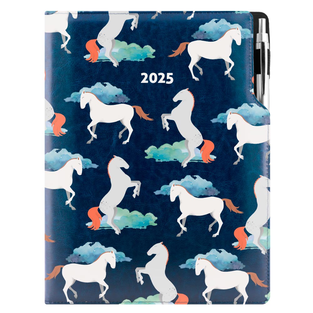 Diář DESIGN týdenní A4 2025 - modrý - koně