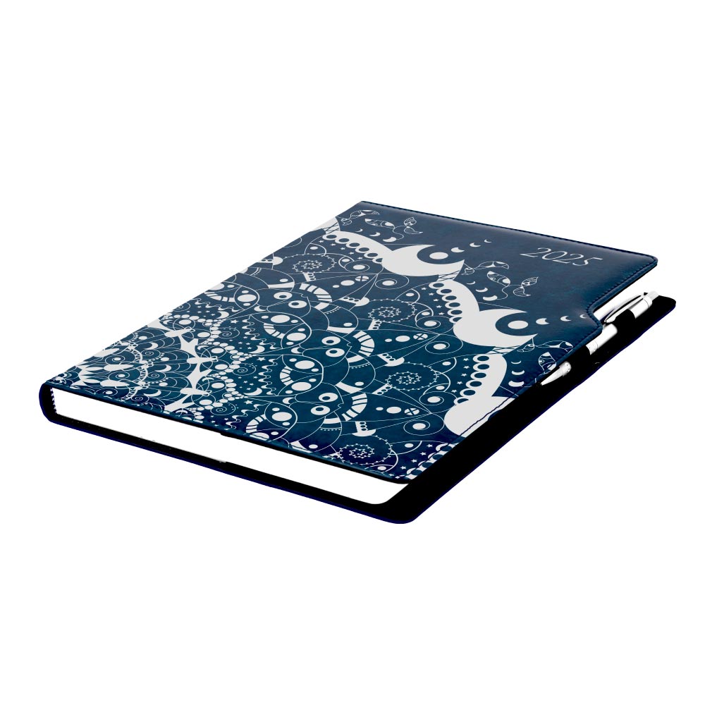 Diář DESIGN týdenní A4 2025 - modrý - ornament