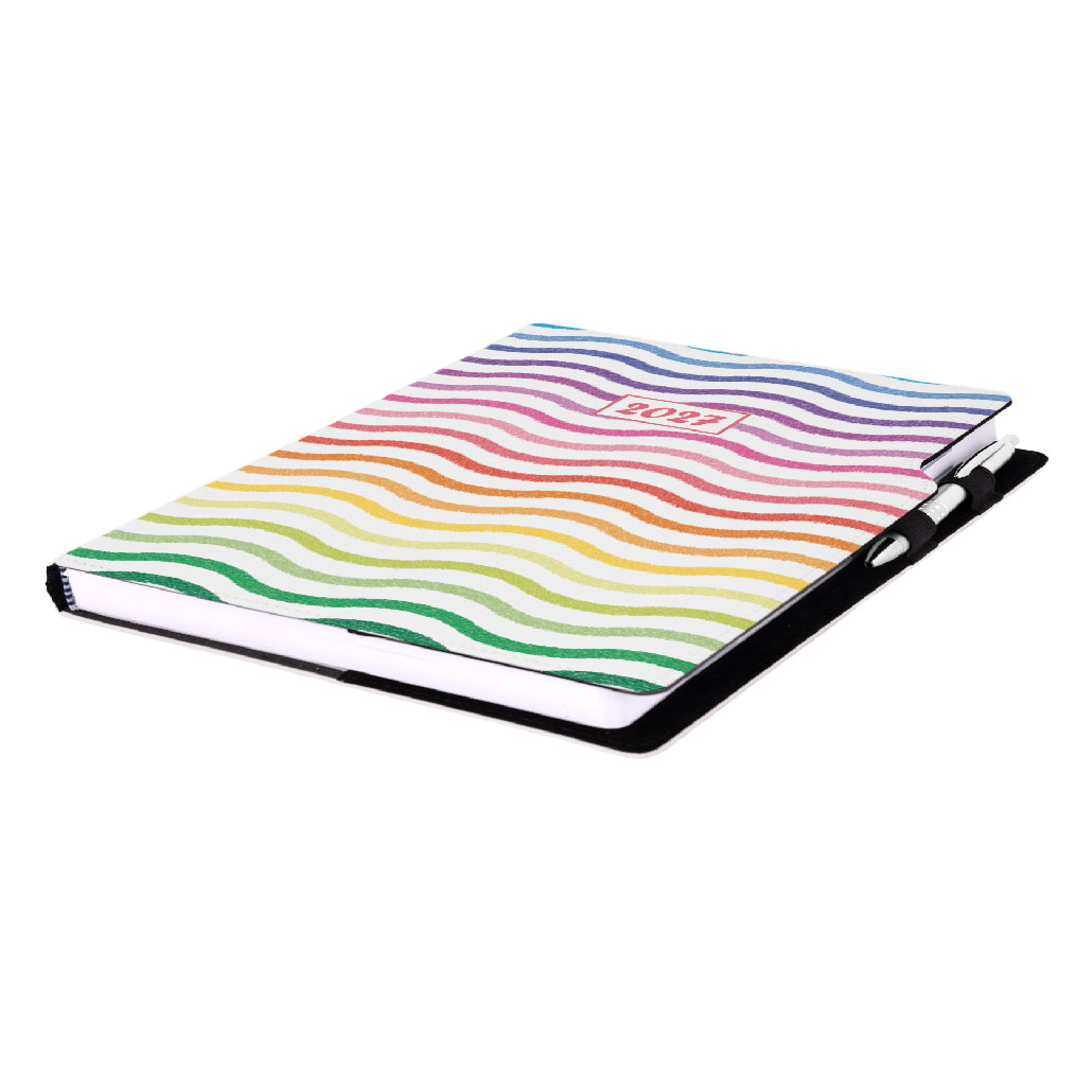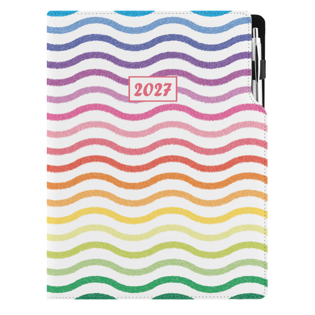 Diář obsahuje: kulaté odtrhávací rožky, bílou záložku a propisku