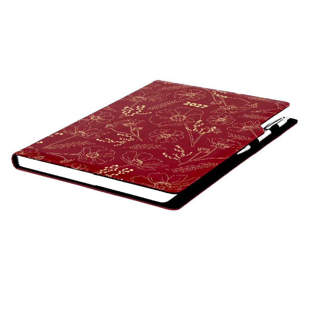 Diář DESIGN týdenní A4 2027 - bordó - Květiny