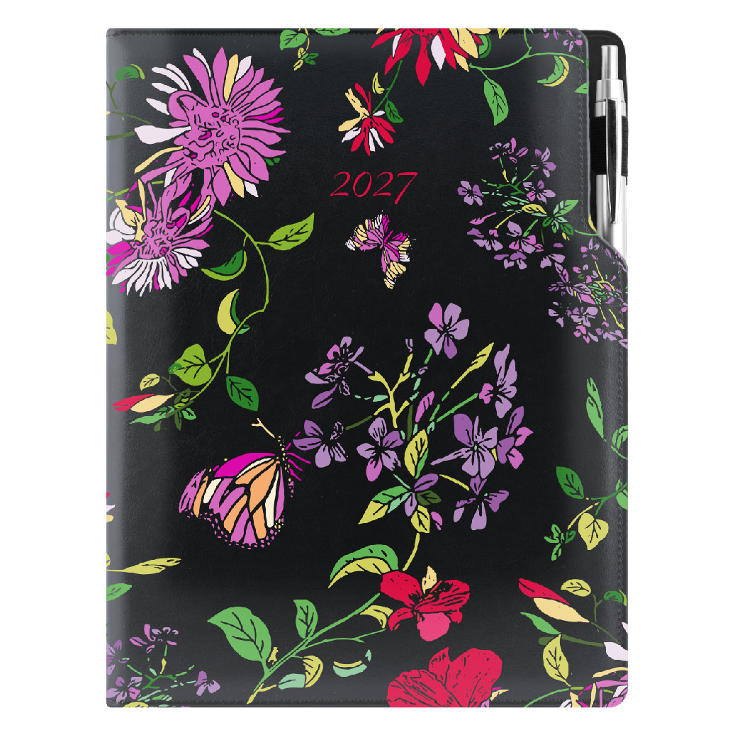 Diář DESIGN týdenní A4 2027 - černá - Květy
