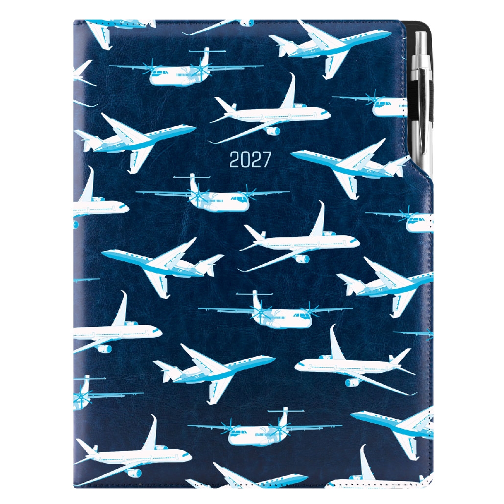 Diář DESIGN týdenní A4 2027 český - modrá - Letadla