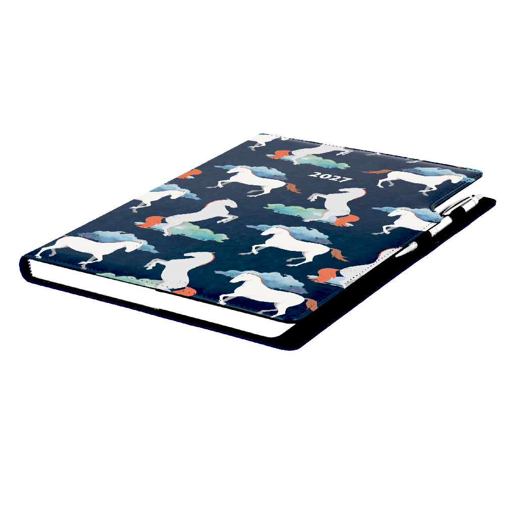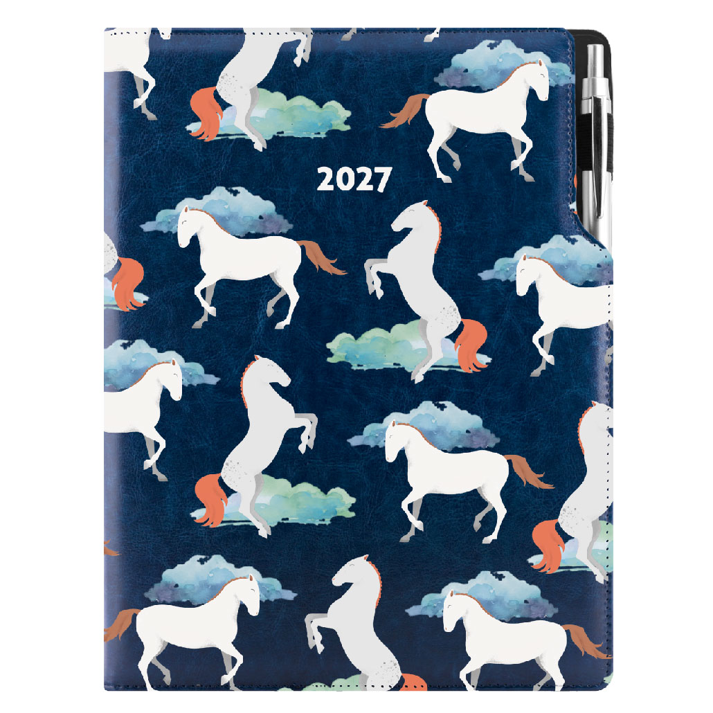 Diář DESIGN týdenní A4 2027 - modrá - Koně