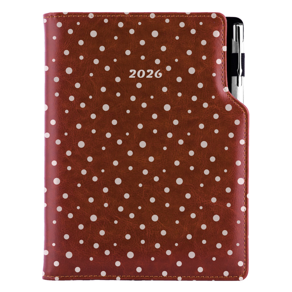 Diář DESIGN týdenní A5 2026 slovenský - hnědá - Puntíky