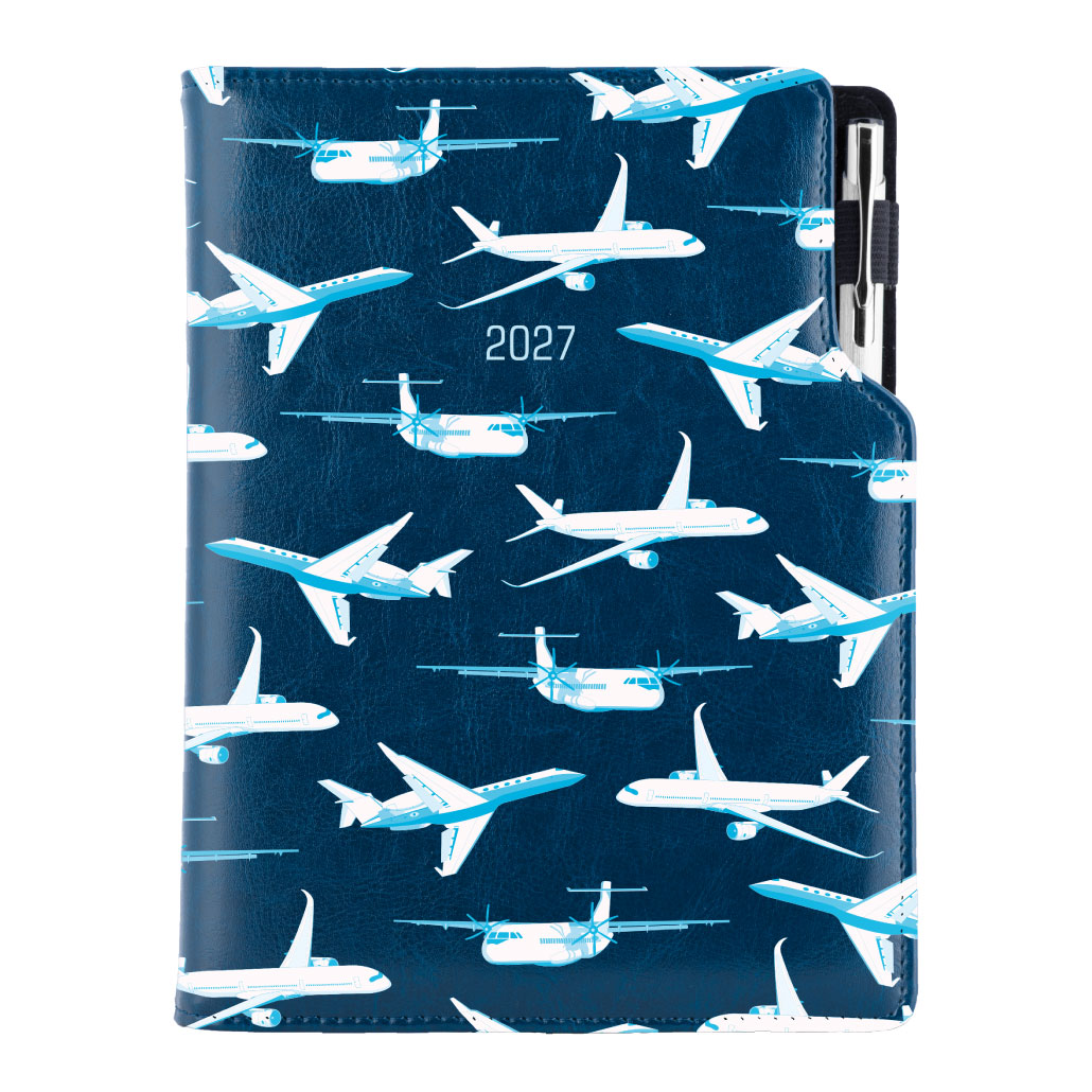 Diář DESIGN týdenní speciál A5 2027 - modrá - Letadla
