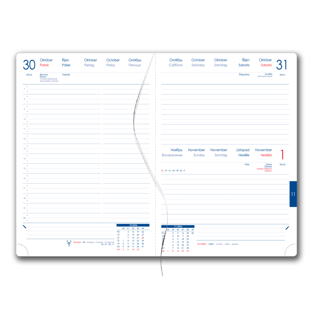 Diář obsahuje: kulaté odtrhávací rožky,
