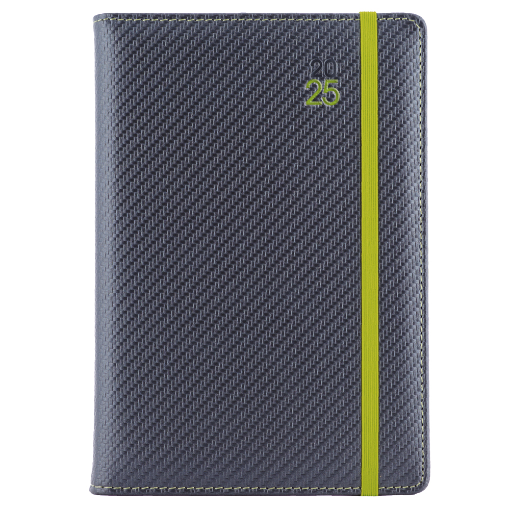 Diář ELASTIC denní B6 2025 polský - grafit/zelená gumička