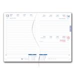Diář obsahuje: kulaté odtrhávací rožky, bílou záložku a propisku