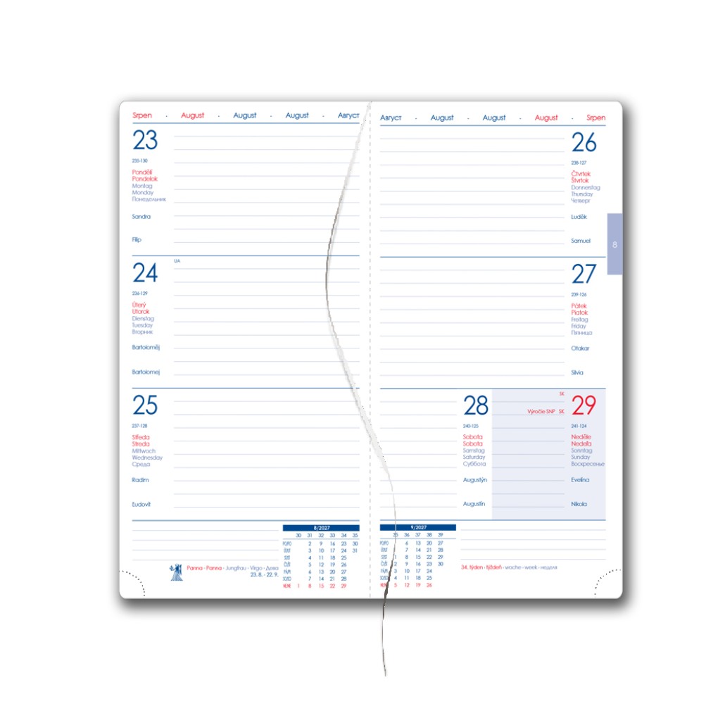 plánovací kalendář 2027, roční plánovací kalendář CZ a SK,