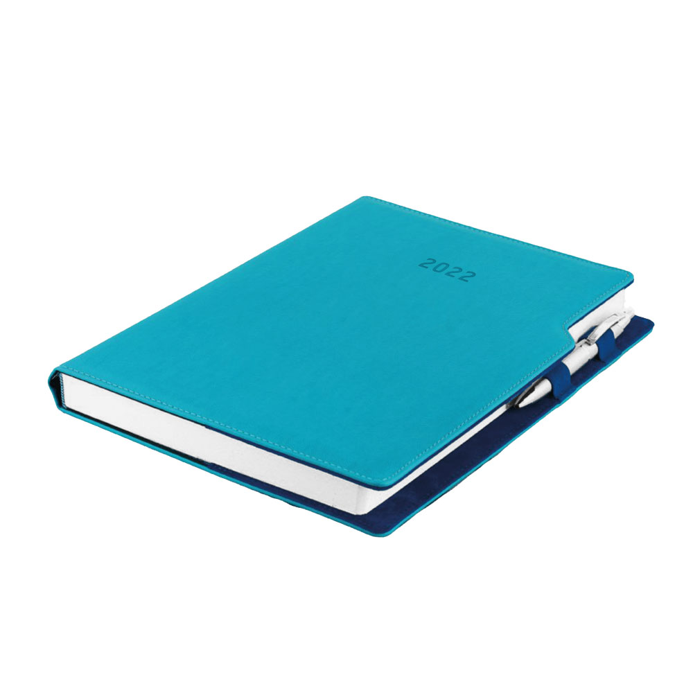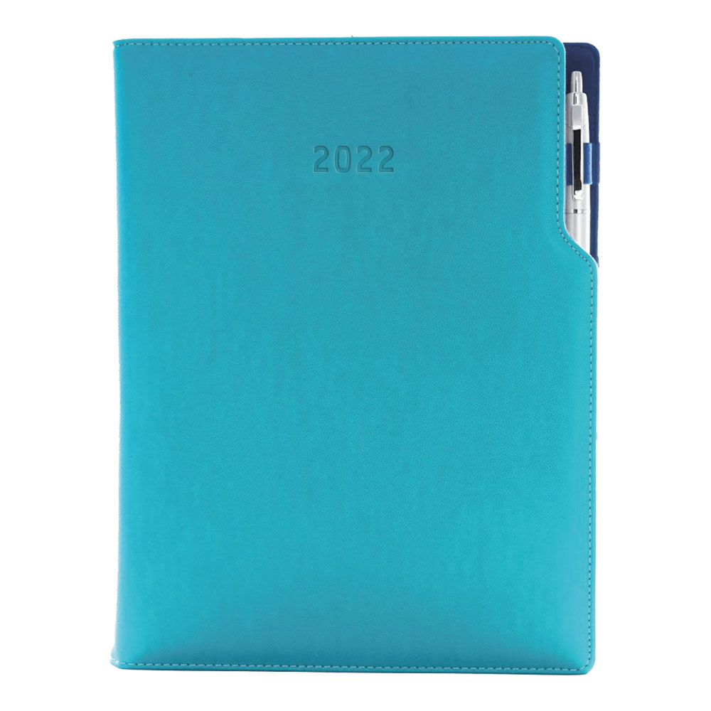 Diář GEP s propiskou denní A4 2022 polský - tyrkysová/modrý vnitřek