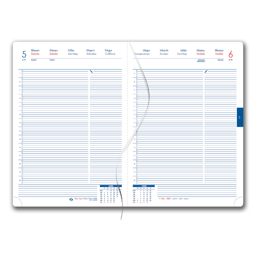 Diár obsahuje: okrúhle odtrhávací rožky,bílou záložku a propisku