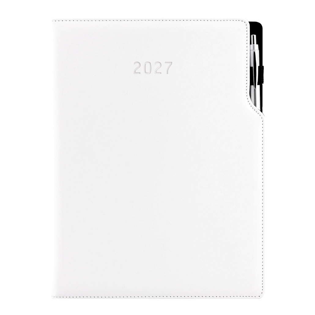 Diář GEP s propiskou denní A4 2027 - bílá/bílé obšití