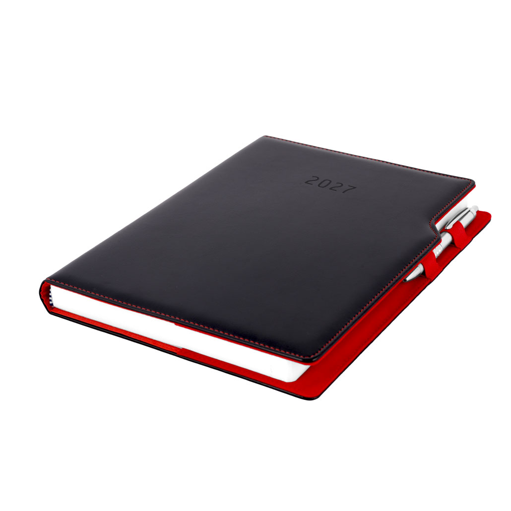 Diář GEP s propiskou denní A4 2027 - černá/červený vnitřek