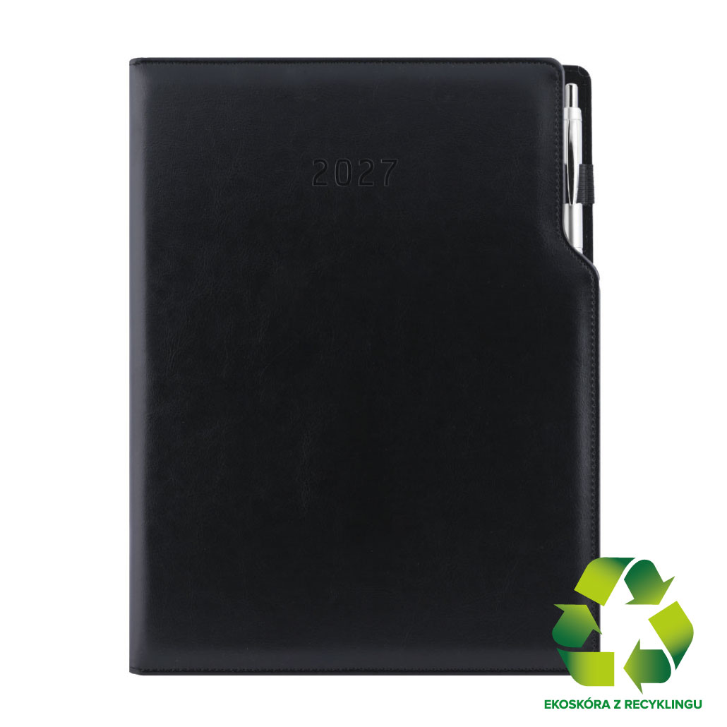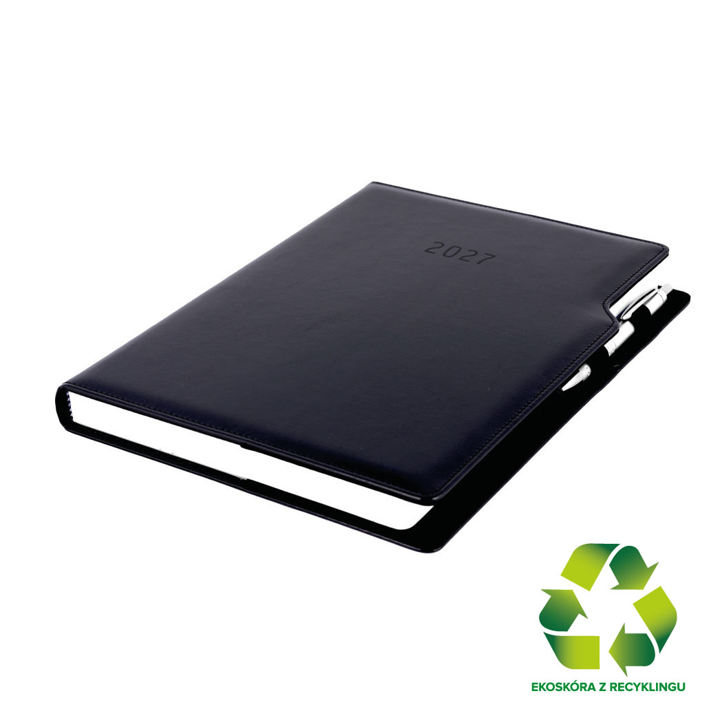 Diář GEP s propiskou denní A4 2027 polský - černá/černý vnitřek - recyklovaná koženka