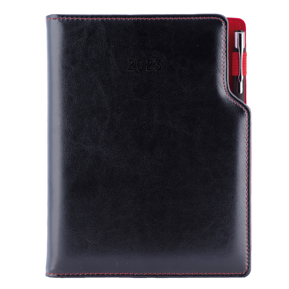 Diář GEP s propiskou denní A5 2023 slovenský - černá/červený vnitřek