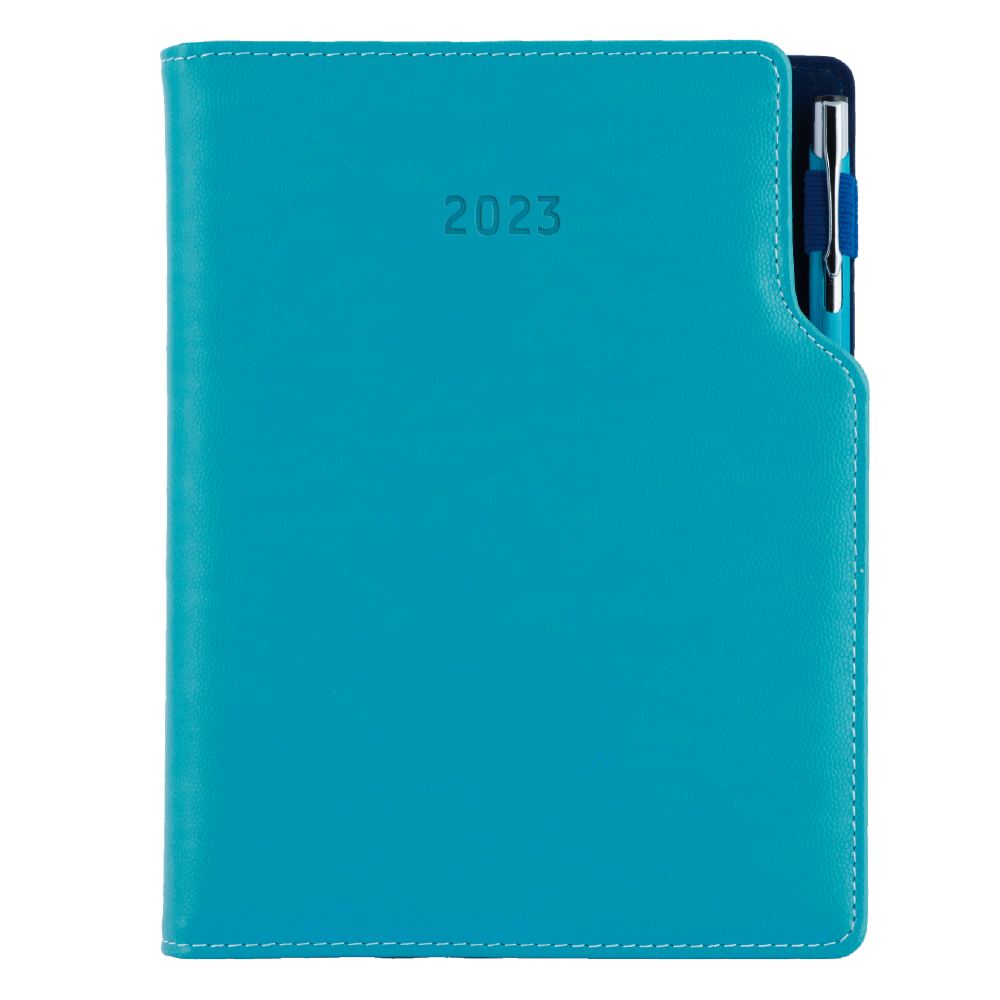 Diář GEP s propiskou denní A5 2023 slovenský - tyrkysová/modrý vnitřek