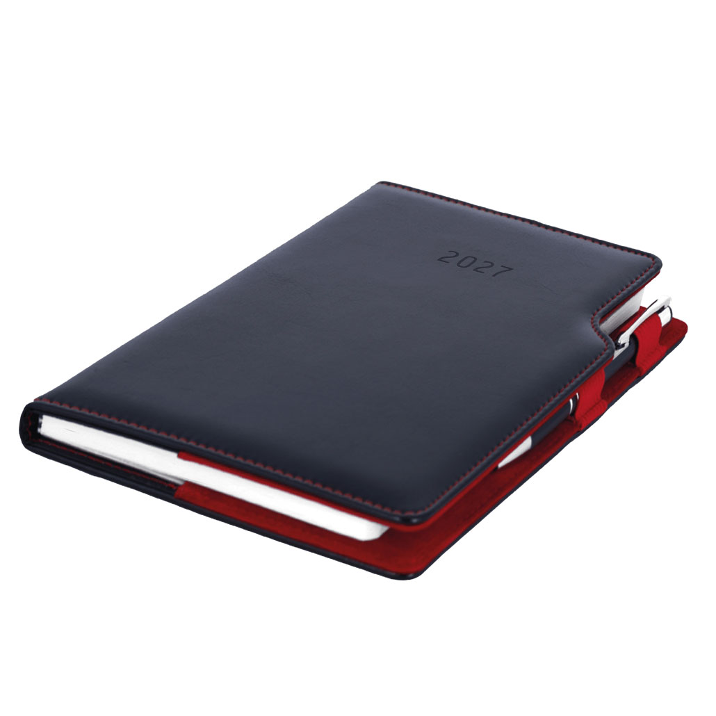 Diář GEP s propiskou denní A5 2027 český - černá/červený vnitřek