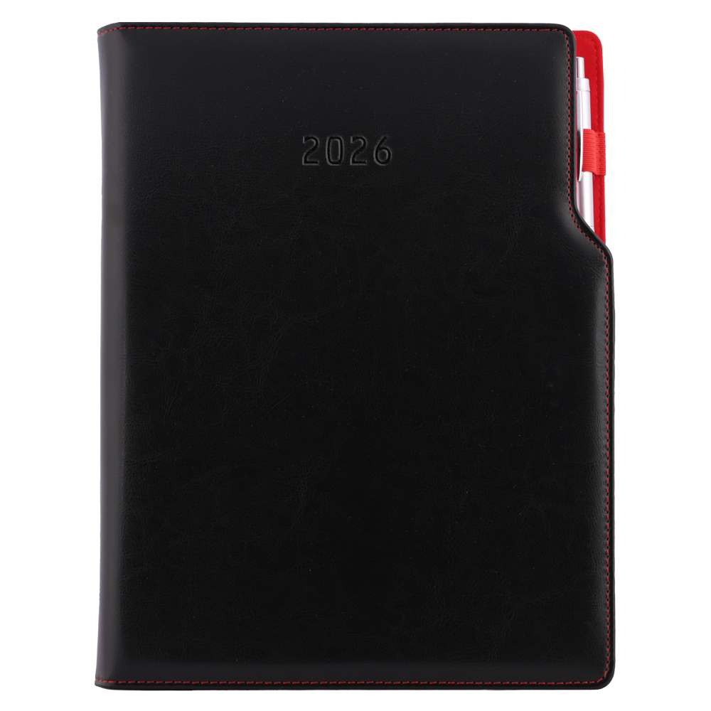 Diář GEP s propiskou týdenní A4 2026 polský - černá/červený vnitřek